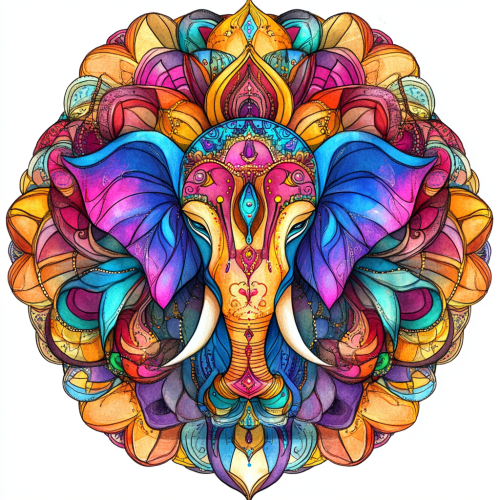 mandala style Ganesha cartoon illustration, boho, digital art by Jan Tengnagel, Shutterstock contest winner, furry art, artwork, angular art watercolor, watercolor background, ultra-quality, isolated white background, 8k, V 6.1